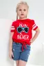 Футболка для девочки с завязками и ярким принтом.