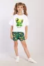 Комфортная пижама для девочки с ярким модным принтом "Лягушка". Пижама детская состоит из футболки и шорт. Дизайн ткани позволяет использовать пижаму не только для сна, но и как костюм для дома. Материал очень мягкий и в то же время износостойкий, не скатывается и не вытягивается. Модель пижамы не сковывает движения ребенка во время сна. Покрой футболки оверсайз, укороченная, шорты классические без карманов. Пижама выполнена из 100% гипоаллергенного хлопка, что позволяет коже ребенка дышать во время сна.
