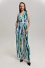 Стильный и универсальный элемент летней одежды - комбинезон с брюками. Верх комбинезона соединён с брюками, тем самым создаётся непрерывный образ сверху вниз, визуально удлиняя фигуру. Передняя и задняя части верха комбинезона состоят из двух отдельных элементов, которые соединены на запах, образуя элегантный V-образный вырез. По линии талии вшита резинка, а в комплекте есть пояс. Брюки свободные, прямые с боковыми карманами.