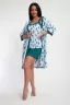 Пижамный костюм из кулирки халат + майка + шорты. Запашной халат с поясом, рукава чуть ниже локтей. Однотонная майка на узких лямках, цветочные вставки. Короткие шорты.