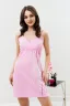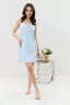 Сорочка на бретелях, полуприлегающего силуэта, длиной выше колена. Полочка с кокетками, под грудью собрана на резинку. В нижней части боковых швов обработаны разрезы. Проймы, бретели и кокетки полочки обработаны бейкой из основного полотна.