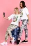 Брюки свободные, длинные, с карманами, на эластичном поясе, с резинкой по низу. Вдоль боковых швов расположены лампасы из отделочного полотна.