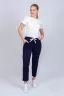 Женские брюки прямого кроя, внизу декоративный шов, пояс на резинке с регулируемым шнурком. По бокам два кармана с отрезным бочком. Отлично подойдут для прогулок и для занятий спортом.