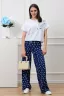 Классические женские брюки палаццо. Широкие брюки создают стильный образ, визуально вытягивают силуэт, свободный крой делают их комфортным и уютным трикотажным элементом одежды. Трикотажные брюки выполненные из эластичного материала с отстрочкой по всей длине спереди и сзади, подчеркивают стройность. Эластичный пояс и два кармана созданы для максимального комфорта.