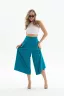 Укороченные широкие брюки - кюлоты с карманами и резинкой на талии подойдут женщинам любой комплекции и возраста. Комбинируя с различным верхом и обувью можно кардинально менять образ от строгого делового до расслаблено неформального.
