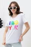 Мягкая трикотажная футболка приталенного силуэта с разноцветным принтом выполнена из 100% хлопка, который не просвечивает. Незаменимая вещь на весну и лето. Стильная модная футболка с короткими рукавами сочетается как со спортивными штанами, так и с классическими брюками, юбками, шортами. Идеальна под пиджак, жакет, кардиган. Это универсальная вещь, которая прекрасно дополнит ваш гардероб и поможет создать интересные образы не только в летние теплые дни, но и в зимнее время года. Подходит для занятий спортом, тренировок, фитнеса, бега, йоги, баскетбола, волейбола, хип хопа, а также для физкультуры.