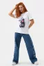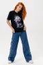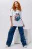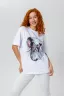 Футболка прямая, свободная, средней длины, с округлой горловиной. Рукав короткий. Горловина обработана эластичной обтачкой.