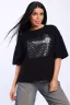 Футболочка просто супер! Мягкая, приятная к телу, сидит идеально. Черный цвет с серебряными вставками выглядит очень стильно.