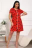 Халат молодежный из натурального, набивного, трикотажного полотна. Горловина круглая. Силуэт -расклешенный к низу. В боковых швах карманы. низ изделия прямой. рукав короткий. Застежка на тесьму молнию.