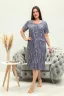 Халат с застежкой на петли и пуговицы, полуприлегающего силуэта, длиной ниже колена, с округлой горловиной, с фигурными накладными карманами. Рукав втачной, короткий. В верхней части полочки расположены кокетки. С разрезами в нижней части боковых швов. Горловина обработана бейкой из основного полотна.