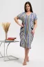 Халат с застежкой на молнию, полуприлегающего силуэта, длиной ниже колена, с V-образной горловиной, с накладными боковыми карманами. Рукав спущенный, короткий. В верхней части полочки расположены кокетки. Спинка из отделочного полотна, с кокетками. В нижней части боковых швов обработаны разрезы . Горловина, проймы обработаны бейкой из основного полотна.