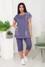 Костюм женский футболка и бриджи. Футболка со спущенным плечом и накладным карманом, низ футболки фигурный. Бриджи с карманами.