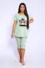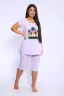 Представляем вашему вниманию женский домашний спортивный костюм, который идеально подходит для комфортного времяпрепровождения дома и на даче. Этот комплект включает в себя удобную футболку и стильные бриджи, которые глубоко заботятся о вашем комфорте. Изготовленный из мягкого и дышащего материала, он отлично подходит для расслабления и активного отдыха. Футболка обладает лаконичным дизайном, что добавляет универсальности, а бриджи прекрасно сочетаются с ней, создавая непринужденный ансамбль. Такой набор станет идеальным выбором в качестве домашней пижамы, позволяя вам чувствовать себя уютно и привлекательно.