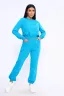 Костюм женский для повседневной носки. Данная модель выполнена из трикотажного полотна футер 2х нитка с лайкрой. Толстовка с втачным рукавом. На полочке присутствует маленьким принт. Манжеты на рукавах и горловина выполнены из эластичного трикотажного полотна кашкорсе. Пояс на толстовке и брюках выполнены из основной ткани под поясную машинку (отделочная тройная строчка). Брюки имеют по бокам карманы, принт на задней детали. По низу брюк вшита резинка 2,5 см.