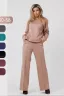 Женский брючный замшевый костюм от российского производителя бренда женской одежды. Невероятно мягкий, удобный теплый комплект из замшевого материала приятного к телу в составе лонгслива и свободных брюк палаццо. Свитшот с длинным рукавом, округлым вырезом горловины. Разрезы по боковым швам кофты и асимметричный крой верха с удлиненной спинкой. Прямые брюки с широкой резинкой на поясе, карманами с отрезным бочком и эффектными отстроченными стрелками по фасаду изделия стойнят силуэт. Необычное дизайнерское решение позволило совместить элегантную классику и эффектный стиль. Базовый вариант подойдет для повседневного ношения в офис или на деловую встречу. На любом мероприятии Вы будете чувствовать себя нарядно и комфортно. Стильный классический костюм подойдет для любого вечера или праздника. Универсальность модели позволит носить его, как в теплые весенний и летний сезоны, так и в холодное время года осень зима. Комплект подойдет для женщин невысокого роста, а также для высоких девушек. Такая двойка гармонично впишется в спортивный или домашний стиль. Трендовый дизайн с элементами олд мани создает шикарный и современный вид. Модель выполнена из легкой, но теплой ткани, что делает ее идеальной для прохладной погоды. Свободные брюки палаццо обеспечивают удобство движения, а джемпер сохраняет тепло. Каждый элемент костюма может носиться отдельно в сочетании с другими элементами гардероба, создавая модные образы. Трендовый костюм позволит подчеркнуть стройность Вашей фигуры. Модель доступна в больших размерах плюс сайз - 50, 52 и 54, будет шикарно смотреться в любом возрасте, подойдет для полных девушек и беременных женщин. Перед использованием рекомендуется предварительная стирка отдельно от других вещей.