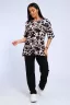 Костюм женский с брюками. Футболка полуприлегающего силуэта. Короткий рукав со спущенным плечом. Брюки прямого кроя.