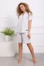 Костюм домашний женский из комфортного трикотажа со стильным принтом, с декоративной отстрочкой. Кофта на пуговицах, с коротким рукавом, с карманом на левой полочке. Шорты средней длины, с боковыми карманами, на эластичном поясе. Элегантный костюм для домашнего уюта из 100%-ого хлопка.