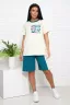 Костюм женский летней тематики: футболка с принтом, свободного кроя, шорты-бермуды оригинального кроя, с принтом а левой штанине, с боковыми удобными карманами и комфортным поясом.