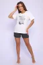 Свободные шорты, футболка с короткими рукавами и принтом. Комфортен для повседневной носки.