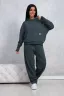 Костюм женский трикотажный: толстовка с капюшоном, карман "Кенгуру", спинка немного длиннее полочки, спущенное плечо, трендовый высокий манжет у рукавов; брюки "бананы" на широком эластичном поясе, с боковыми карманами.
