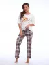Женская пижама из 100% хлопка с рисунком медвежонка на удлиненной сзади футболками и клетчатыми брюками – уют и стиль для вашего дома Женский домашний костюм, выполненный из натурального 100% хлопка (кулирка), обеспечивающего непревзойденный комфорт и воздухопроницаемость. Этот комплект сочетает в себе стильный дизайн и продуманную функциональность, идеально подходя для отдыха и сна. Особенности комплекта: • Футболка: • Нежного цвета слоновой с легким кремовым оттенком, придающим мягкость образу. • Рукава длиной до локтя и спущенная линия плеча обеспечивают свободу движений. • Удлиненная спинка добавляет комфорта и современный акцент. • Очаровательный рисунок медвежонка приносит нотку игривости. • Горловина оформлена кантом в тон брюк, создавая гармоничный образ. • Брюки: • Стильный клетчатый принт с белой основой, широкими бежевыми и тонкими красными линиями. • Прямой крой обеспечивает комфорт и свободу движений. • Наличие карманов добавляет практичности и удобства. Преимущества нашего домашнего костюма: • Натуральный материал: 100% хлопок (кулирка) обеспечивает мягкость, гипоаллергенность и отличную воздухопроницаемость, позволяя коже дышать. • Стильный дизайн: Современное сочетание кремовой футболки с рисунком и клетчатых брюк подходит для женщин, ценящих комфорт и моду. • Удобство в уходе: Ткань сохраняет форму и цвет после многократных стирок, обеспечивая долговечность изделия. Рекомендации по уходу: Рекомендуется деликатная стирка при температуре не выше 30°C. Избегайте отбеливателей и химической чистки. Сушить в расправленном виде, гладить при средней температуре с изнаночной стороны. Подарите себе комфорт и стиль с нашим женским домашним костюмом из 100% хлопка. Идеальный выбор для уютных вечеров и спокойного сна. Наши пижамки идеальны для перепродажи, вшиты только размеры, можно легко нашить Ваш логотип.