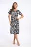 Платье полуприлегающего силуэта с короткими свободными рукавами. В боковых швах разрезы и удобные карманы.