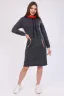 Платье женское комбинированное из футера прямого силуэта. Длинный рукав ма манжете, воротник стойка на шнуровке через люверсы. На передней полочке внутренние карманы с отделкой. Теплое и удобное.