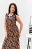 Удлиненное платье-сарафан приталенного силуэта без рукава выполнено из кулирки 100% хлопок оригинальной яркой расцветки. По бокам - разрезы, горловина и проймы обработаны широким кантом. Платье комфортное, идеально подойдет как для дома, так и для отдыха.