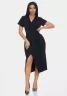 Чёрное платье больших размеров — это идеальный выбор для создания элегантного и женственного образа. Платье свободного кроя не стесняет движений, обеспечивая комфорт в течение всего дня. Короткие рукава b и разрез придают платью лёгкость и непринуждённость, а завязки на талии позволяют подчеркнуть фигуру и добавить образу изюминку.