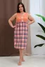 Сорочка женская прямого силуэта, без рукава. В верхняя часть сорочки из отделочной ткани, с рельефами, на планке три пуговицы. Для обеспечения достаточной свободы нижняя часть полочки со сборкой.