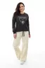 Замечательный свитшот! Свободного покроя, идеально сидит, материал приятный к телу. Особенно нравится принт с серебром – выглядит стильно и дорого.
