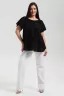 Туника женская, силуэт трапеция. Рукав реглан, короткий. Горловина собрана на эластичную тесьму. Низ туники фигурный. В лекалах учтена незначительная усадка ткани после стирки.