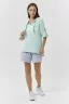 Туника прямая, свободная, с капюшоном, с удлиненной спинкой. Рукав короткий, с декоративными элементами вдоль рукава. В нижней части боковых швов обработаны разрезы.