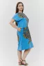 Туника женская прямого силуэта, рукав цельнокроенный короткий, в боковых швах внутренние карманы, внизу - разрезы. На полочке и спинке принт.
