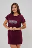 Женская туника-футболка выполнена в лаконичном стиле с прямыми линиями кроя. Ее отличает удобный фасон, подчеркивающий женственность фигуры. Модель оснащена круглым вырезом горловины и короткими рукавами типа реглан, обеспечивающими свободу движений и комфорт. Особенностью изделия является оригинальная отделка — низ туники оставлен с необработанными краями, создавая эффект легкой небрежности и современности. Центральное внимание привлекает стильный принт на груди с надписью, украшенный сверкающими стразами, придающий образу дополнительную яркость и шарм.