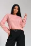 Женственная туника с принтом горох и переходящими на перед кокетками. Горловина окантована, рукава и низ туники подшиты на прямострочке.