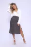 Юбка миди с разрезом, с высокой посадкой, является базовой основой стиля любой девушки. Свободный а-силуэт скроет недостатки, а завышенная талия на резинке выгодно подчеркнет достоинства. Длина миди ниже колена в сочетании с разрезом на бедре зрительно вытягивает и стройнит. Модная юбка из легкой воздушной ткани станет любимым предметом женского гардероба. Идеальна для повседневной носки и незаменима на пляже летом. Она будет отлично смотреться как в офисе, так и в ярком молодежном луке. Женственная юбка дополнит образ легкостью и элегантностью.